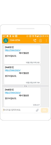 발생된 청구서는 고객의 연락처에 문자로 전송됩니다.